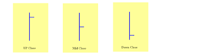 Up close : A close near the High would be termed as a Up close. (Upper 30% of the Bar)